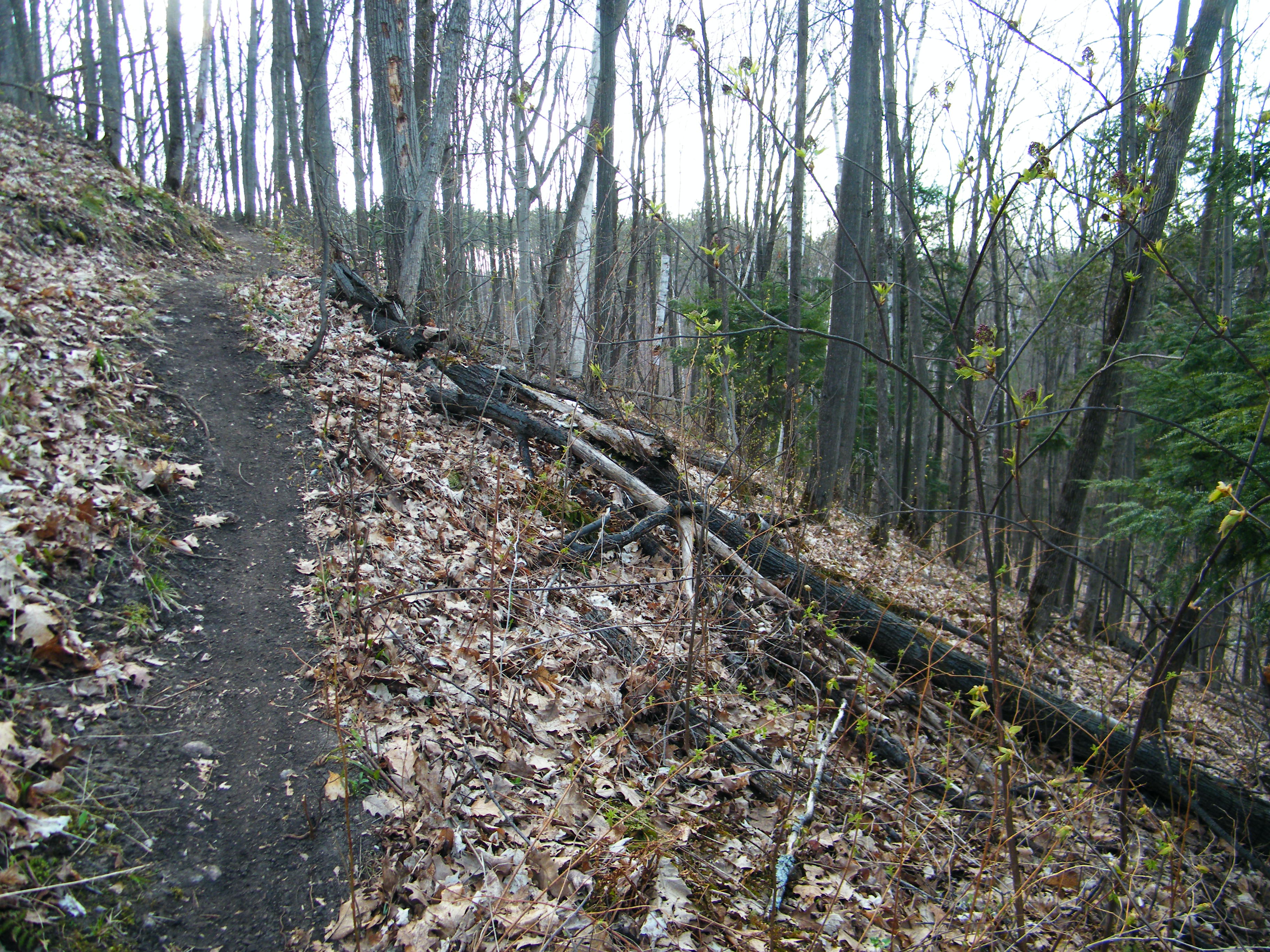 Lots of fallen logs on the course. This is shortly before the aid station where I announced to Caron, I was running the 50k.