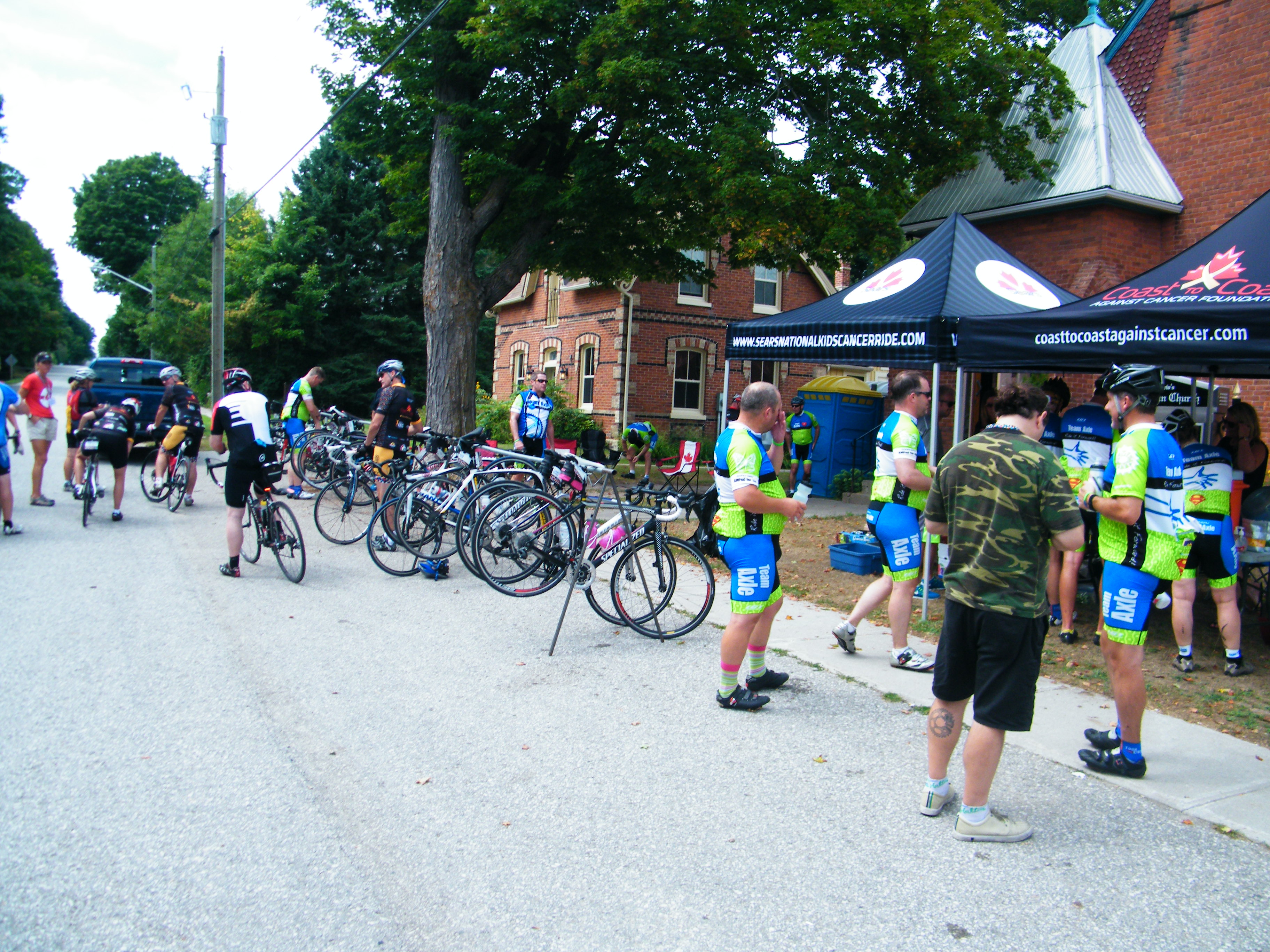 Along the routes there are rest stops/aid stations, and for the 3rd time in 4 years the tour has come right through my home village of Hillsdale.  And in each of these 3 visits it has been an honour to have the church grounds where I am lay pastor used in a very small way to  be used as one of the locations of one of the rest stops.  This year the Tour for Kids had 350 riders of which 275 would have ridden through Hillsdale.
