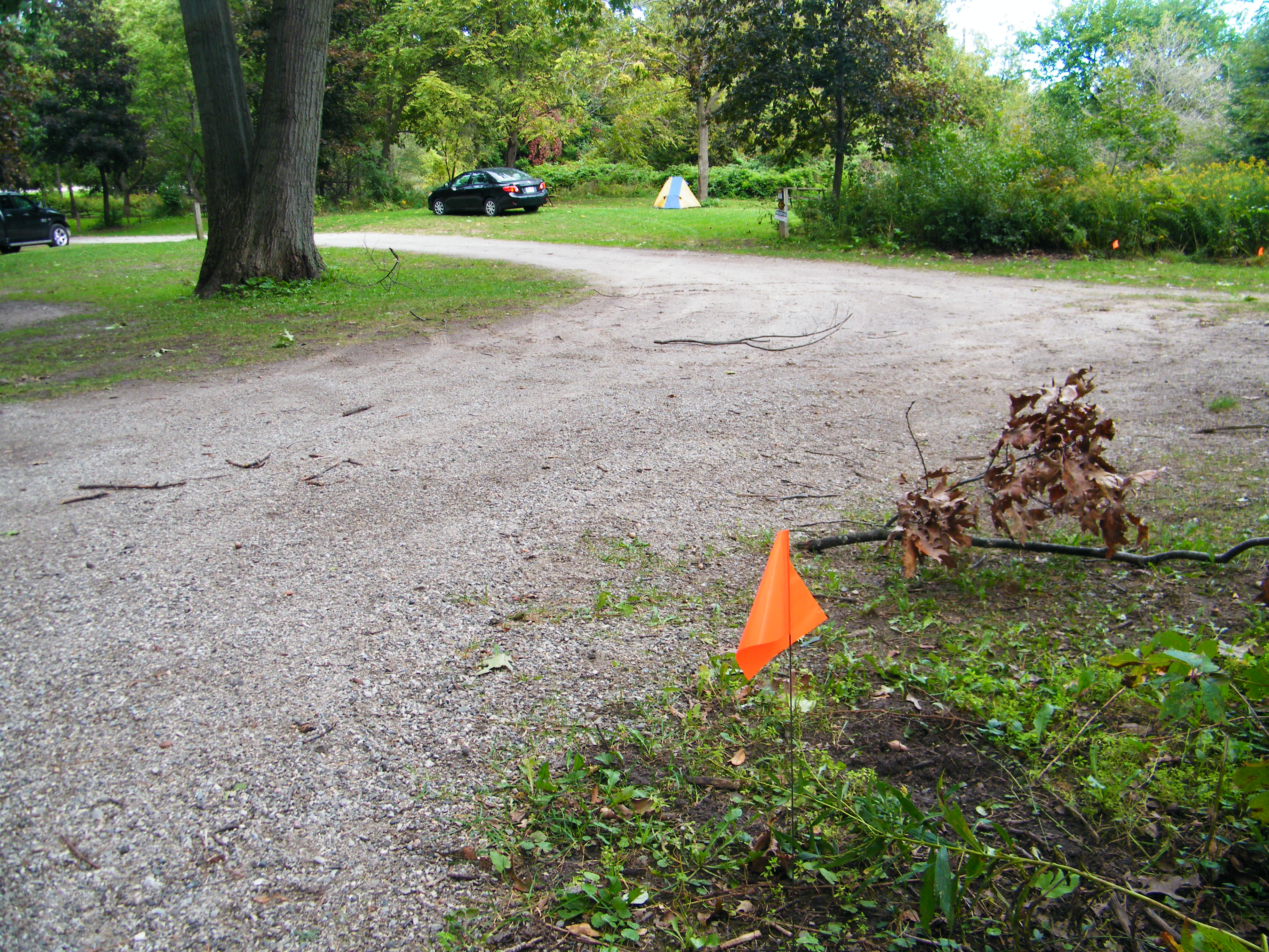 My tent set up very close to the race course which was marked by the red flags. (it goes past that dead branch and makes a hard right)