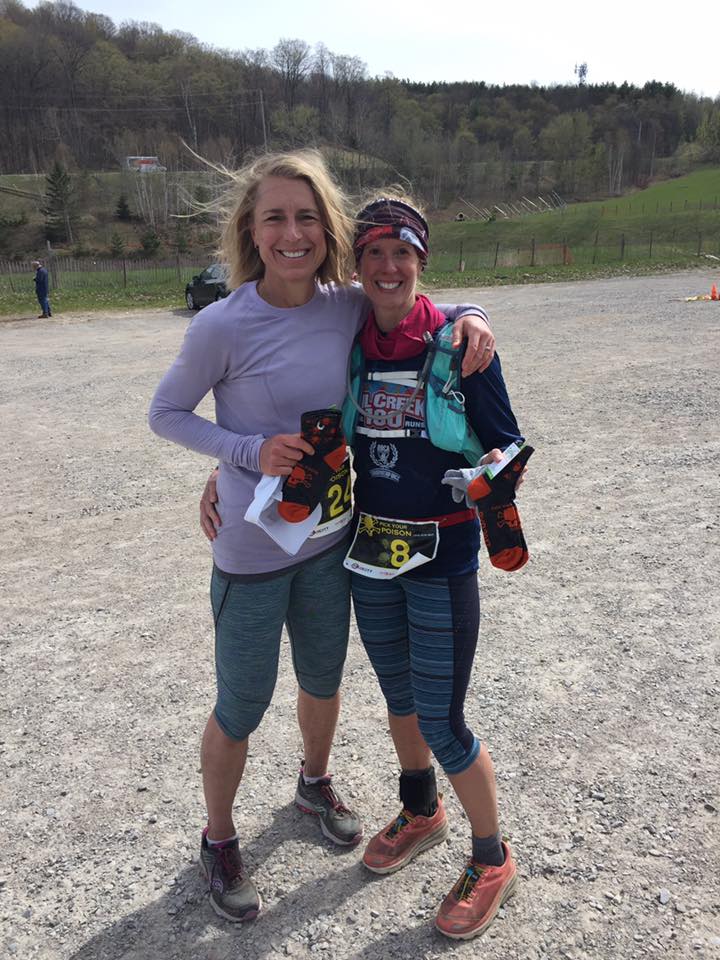 Caron and I after finishing in 2016. You will notice runners on the course coming down the hill to their finish! 🙂