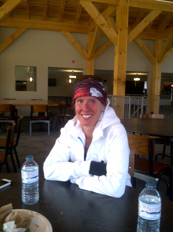 I was sitting at a round table with my niece Caron’s two friend’s Kristy and Julie. Caron crossed the finish not long after I sat down (finishing two 50k’s in under a week) and joined us. And shortly after that Pierre Marcoux from Creemore Vertical Challenge and now highly involved with the Ontario Ultra and Trail Race Series finished his 50k and joined us.