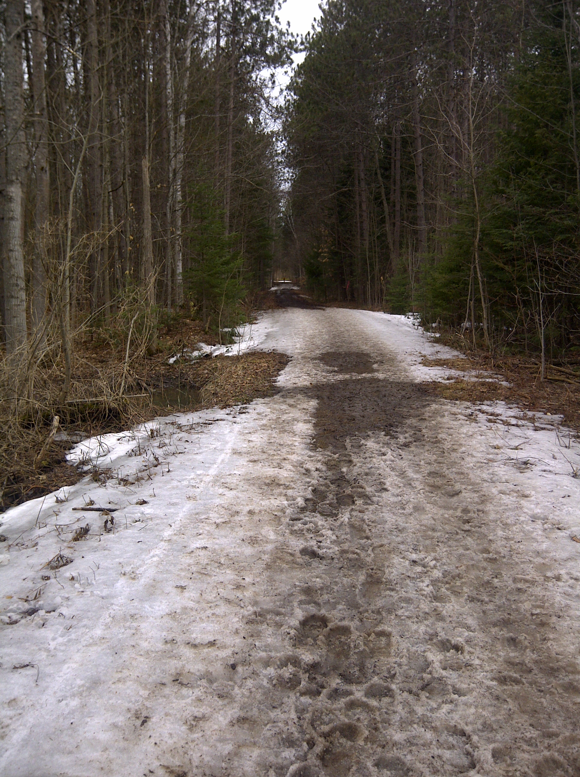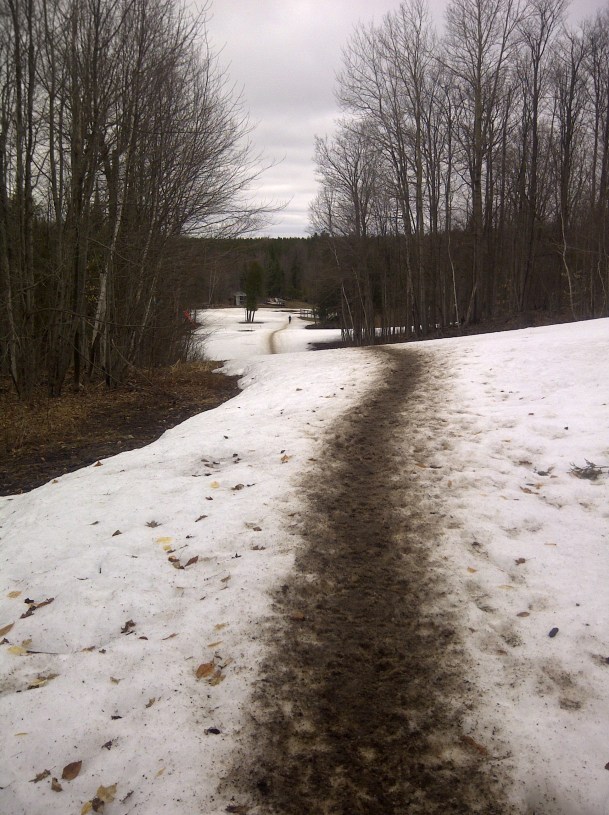With these trail races and ultras you never know what to expect on race day. Conditions on the same course can widely vary from one year to the next. Last year 2 weeks prior to Pick Your Poison, the trails were bare and dry and my niece and I were doing some serious training together in Copeland Forest to get ready for our 50k. This year we had a very cool spring leaving a lot of snow still on the trails. This did not bother me that much because I had been getting out each week trail running in the snow and loved it. That was until the big storm hit. And with a weather forecast of 4C with rain and wet snow for race day, there then became a haunting fear that this could be my 1st DNF (Did Not Finish).
