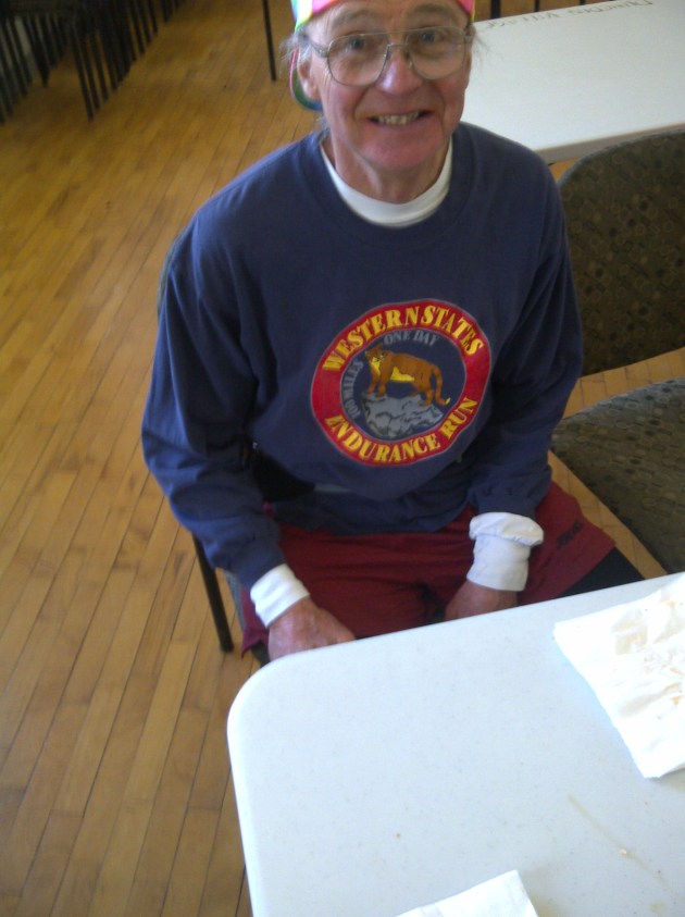 Ron and I finished our 2nd 13 kilometer loop and called it a day, for a 26 total kilometer Fun Run. Hans went on to do a third loop. But pizza was beckoning. I sat at the table closest to the pizza and joined two young female runners named Becky and Johanna. We introduced ourselves and started talking. Shortly after Ronald Gehl joined the three of us. It did not take long for the focus to be on Ron. I had the privilege of having legend Ronald Gehl to myself for the previous hour. So I sat back and listened to the ladies many questions, and hearing Ron’s answers from many years of wisdom and experience of running some really tough ultramarathons. I learned about Ron’s experience at Western States 100 miler which he has run twice. And Ronald Gehl’s toughest race ever, Hurt 100 miler in Hawaii. Who knows, these ladies could very well be the legends of tomorrow. And Ronald Gehl, like Pierre Marcoux, like Hans Maier have been fueling those fires of inspiration that could very well make it happen. Thank you Pierre. Thank you Hans. Thank you Ronald.