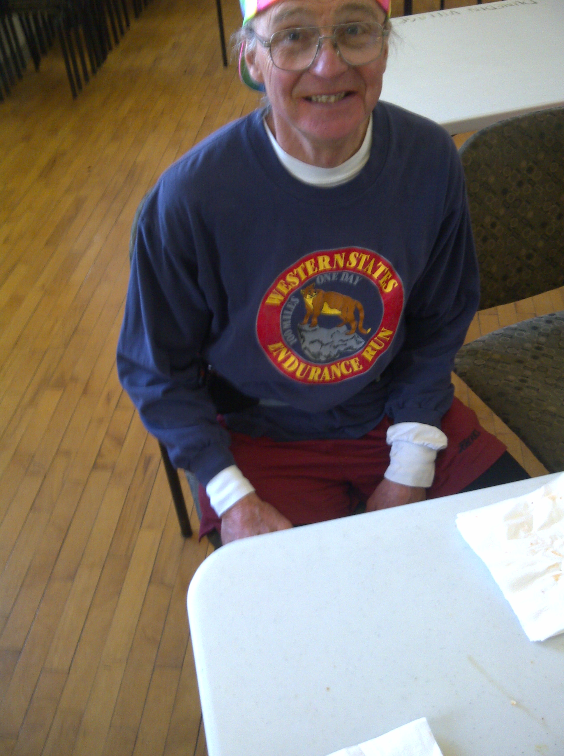 Ron and I finished our 2nd 13 kilometer loop and called it a day, for a 26 total kilometer Fun Run. Hans went on to do a third loop. But pizza was beckoning. I sat at the table closest to the pizza and joined two young female runners named Becky and Johanna. We introduced ourselves and started talking. Shortly after Ronald Gehl joined the three of us. It did not take long for the focus to be on Ron. I had the privilege of having legend Ronald Gehl to myself for the previous hour. So I sat back and listened to the ladies many questions, and hearing Ron’s answers from many years of wisdom and experience of running some really tough ultramarathons. I learned about Ron’s experience at Western States 100 miler which he has run twice. And Ronald Gehl’s toughest race ever, Hurt 100 miler in Hawaii. Who knows, these ladies could very well be the legends of tomorrow. And Ronald Gehl, like Pierre Marcoux, like Hans Maier have been fueling those fires of inspiration that could very well make it happen. Thank you Pierre. Thank you Hans. Thank you Ronald.