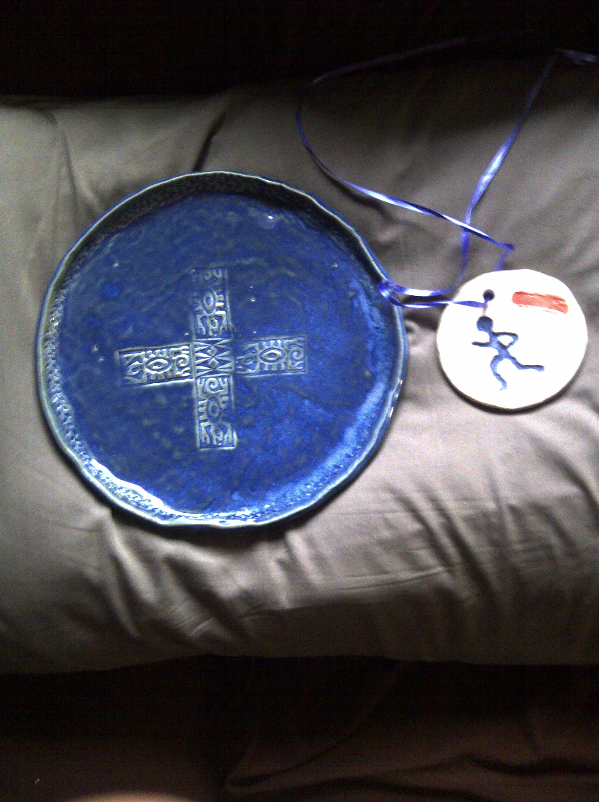A wonderful finishers medal for completing at least one loop of spring warmup, plus I won a beautiful door prize of Pierre’s wife Lee Anne’s pottery. It is so gorgeous, Lee Anne has a dedicated fan base who collect her work.