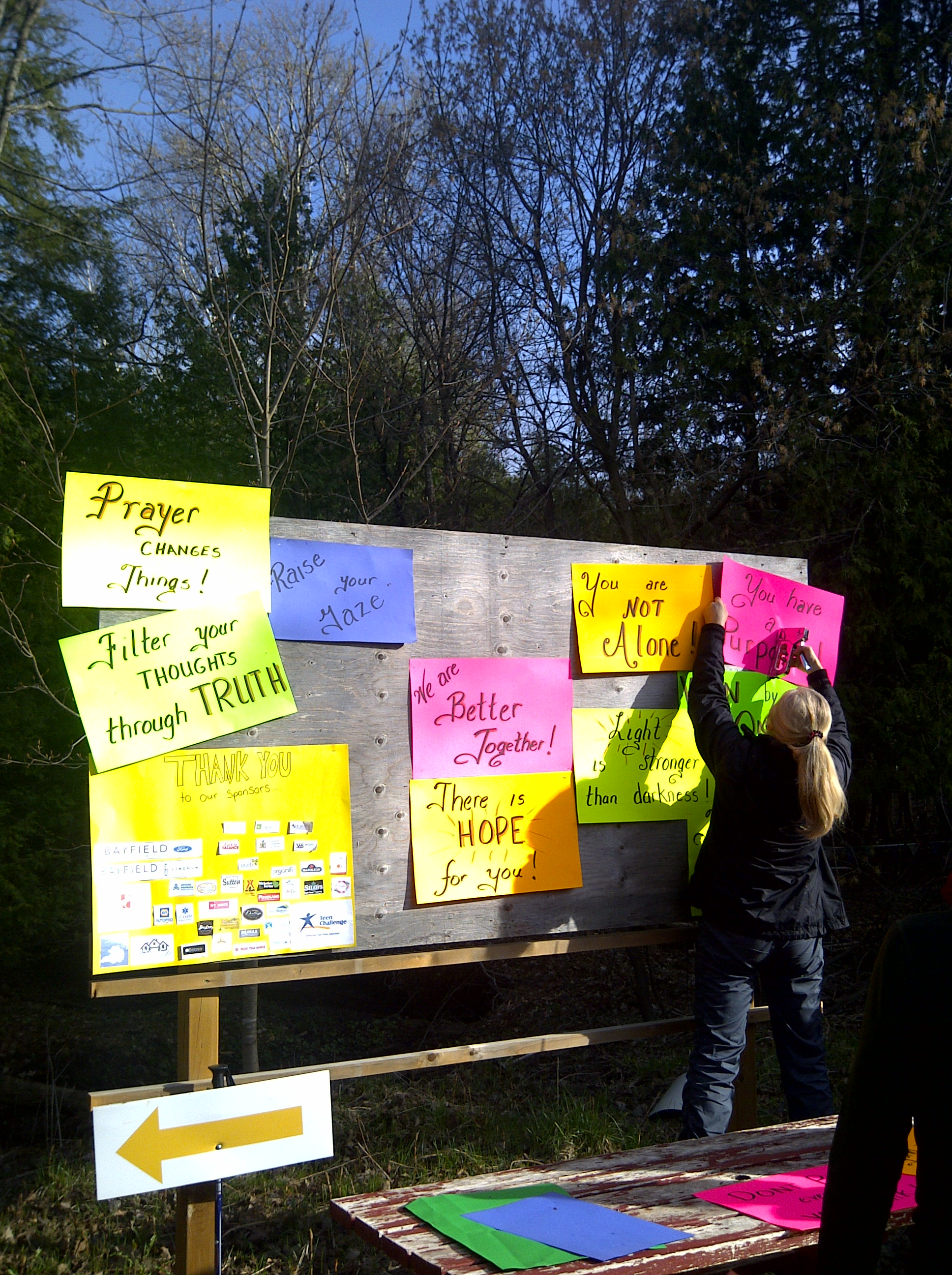 Amanda’s dear mom Sharon getting the sign board ready with inspiring messages of Faith, Hope and Love.