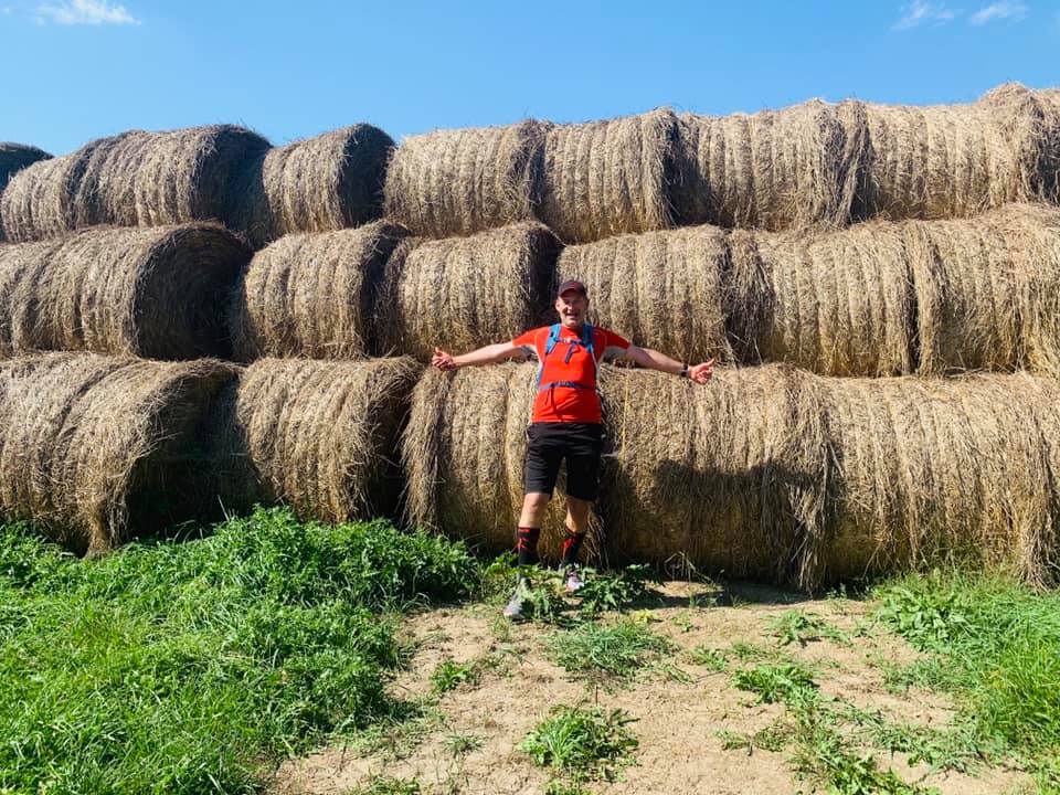 As important aspect of the Monarch Ultra Relay project is the opportunity to connect communities and their people across North America with common goals of Earth stewardship & biodiversity conservation. That these people who work so hard to make the environment a better place are not islands, but part of a much bigger picture. And that picture is magnificent. One of those people who comes to my mind is a gentleman farmer by the name of Chris. For runner Julie, she was at the 87 kilometer mark in this brutally hot 36C weather on September 22nd. There was an aggravating stone in her shoe, so she sat down beside this driveway/road allowance to take her shoe off, and get rid of the stone. A red pickup truck drives out of the driveway and stops right beside Julie. The driver had a friendly, inquisitive look on his face.