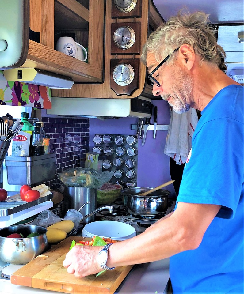 It was amazing watching team chef Guenther make incredibly healthy and delicious meals in such a tiny space. When the RV was moving this dear man was behind the wheel. Image source Holly Chaille