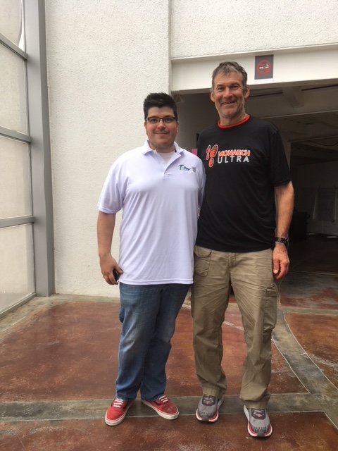 We learned that Carlotta had arrived from her run, along with the Monarch Ultra team and police escorts. A television film crew had already set up their equipment outside and were interviewing Carlotta for the news. Things happen fast in Mexico! I could tell immediately that Carlotta was stoked. Noticing me off to the side, she subtlety acknowledged me with a big grin and carried on with her interview. After the interview, Carlotta came over and gave me a big, welcoming hug along with as Clay, Rodney and Guenther. And I learned what happened during Carlotta’s run through Reynosa. Hundred’s of school children had lined the streets cheering her on while waving Monarch crafts and artwork. And giving her high fives and hugs.