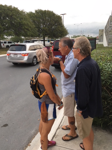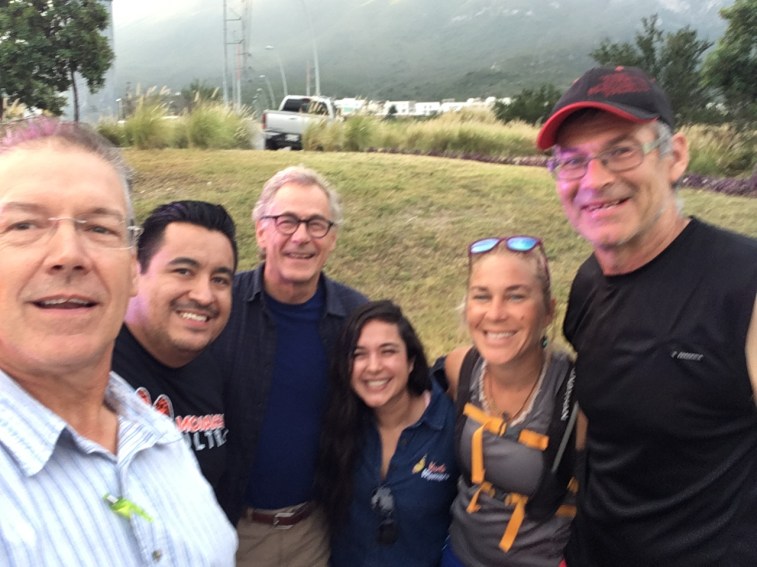 Our new Monterrey friends Luis Caballero and Claudia Freeze from Vuelo Monarca are such encouragers. Picture taken where Carlotta was to start running with the police escort.