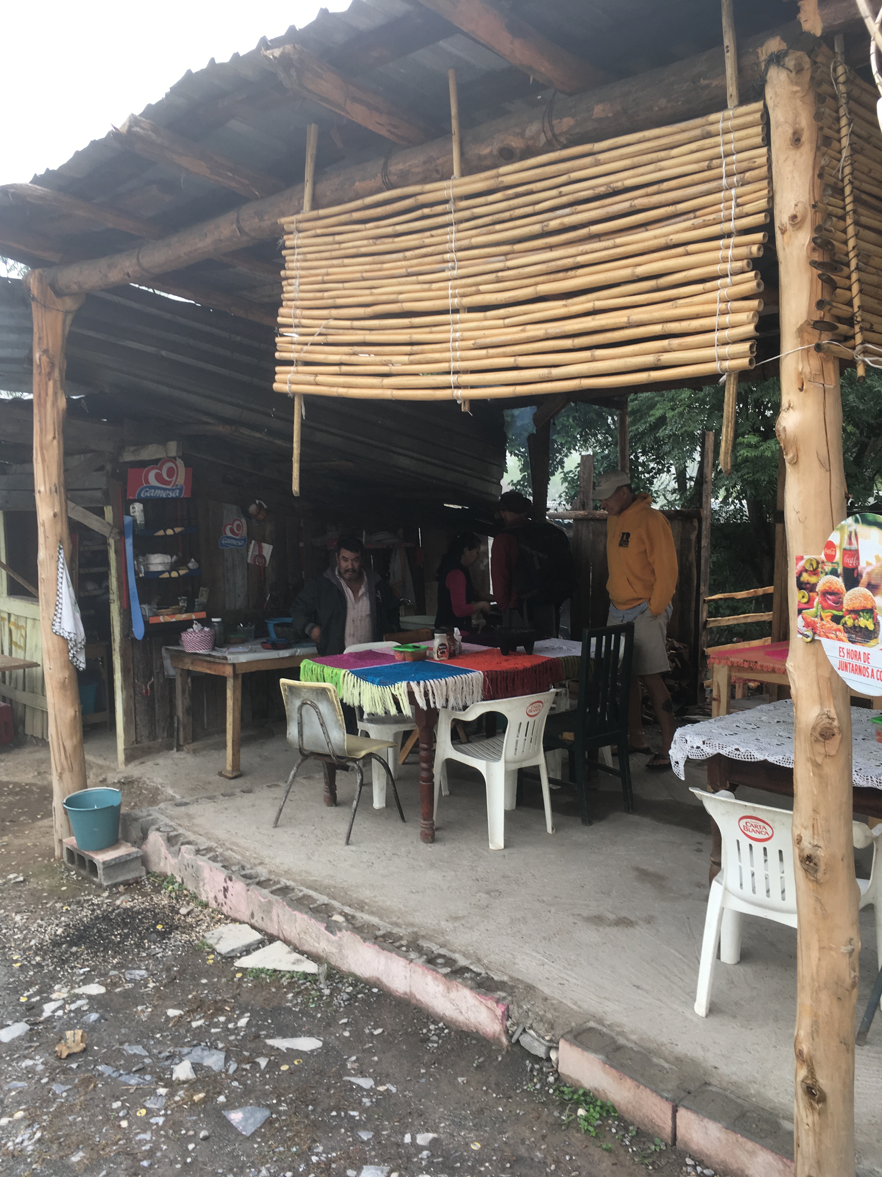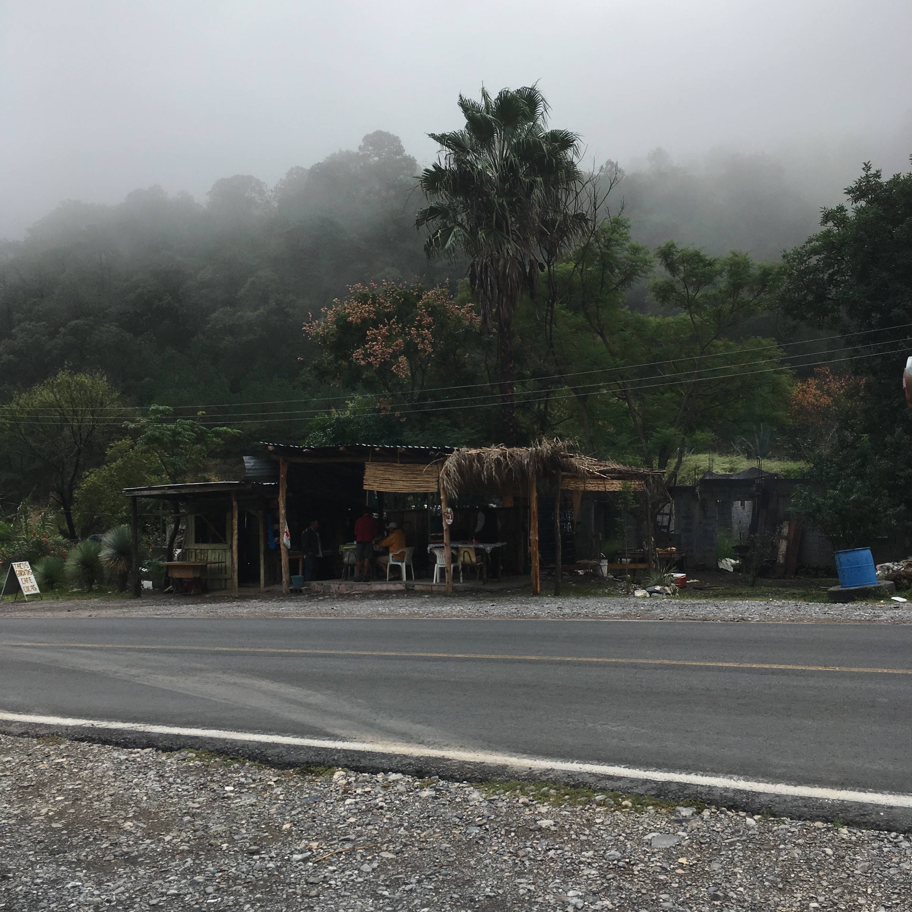 Running up mountains that climb a mile vertical takes a tremendous amount of fuel. We knew that Lucas would need something much more substantial than the granola bars we had in the van. Or he was going to crash. We had come across nothing for food businesses in the countryside outside of Linares. Our only option was to drive on ahead to find something. But where? We kept climbing and climbing higher and higher into the mountains. Past our next aid stop location we kept going. Nothing but mountains and forests. Then around five kilometers past the next aid stop there was a humble little roadside family run eatery. A sandwich board sign on the side of the road announced they were open for business with tacos and other authentic Mexican cuisine.