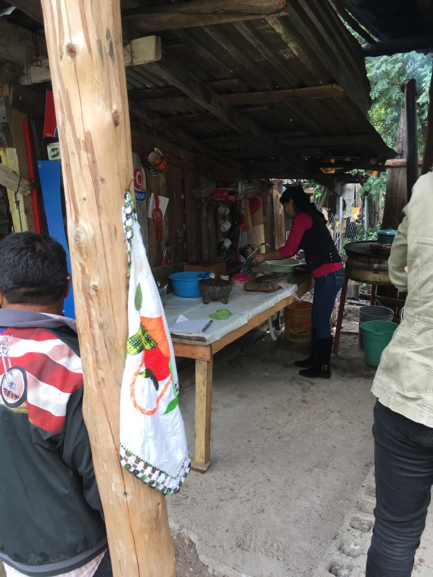 This was the authentic Mexico I was hoping to experience. The rustic establishment had a wood fired stove and a little outdoor eating area. The friendly lady proprietor was kind enough to allow us to take photos as she prepared our lunches right in front of us. Even encouraged me to go around to the other side to see the open fire for a photo. We quickly ate our lunch just beneath the clouds within the magnificent Sierra Madre mountains. And with several tacos packed for our runner in hand we backtracked to meet Lucas.
