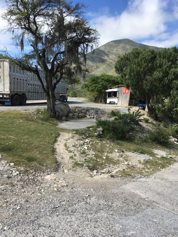 There was an eatery where we stopped. The food must be good as truckers were stopping. It was also the top of the mountain pass. We were still stuffed from eating at Manolo’s, so we didn’t purchase anything here. The road to Las Alazanas is on the bottom right corner of photo.