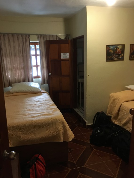 Our simple, yet comfortable low budget room. My bed was straight ahead, and Clay’s bed was on the right. The challenge was to not move around too much as my bed was very squeaky.
