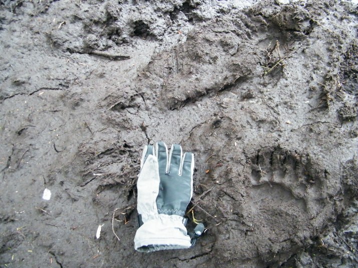 May 12th. One of my last trips in to this swamp north of Cassel Drive before the mosquitos get too thick. I have seen bear footprints in the area often before. But nothing this big. My glove is an extra large by the way for comparison.