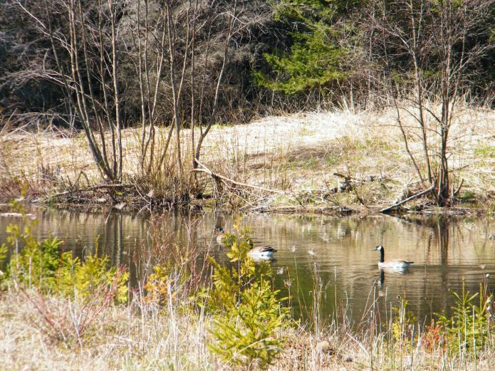 May 13th. This is where a camera with a better zoom lens would come in handy. I saw in the distance the little pond with the geese on it from the country sideroad I was running. Hiked in on someone’s property posted with No Trespassing signs to get the photo. Boy, was I nervous.