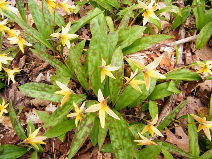 May 17th. Loved seeing so much the short lived Trout Lily. Flowering before the tree leaves are bursting out of their buds, and even a few days before the beautiful trilliums, their new life gives me such joy.