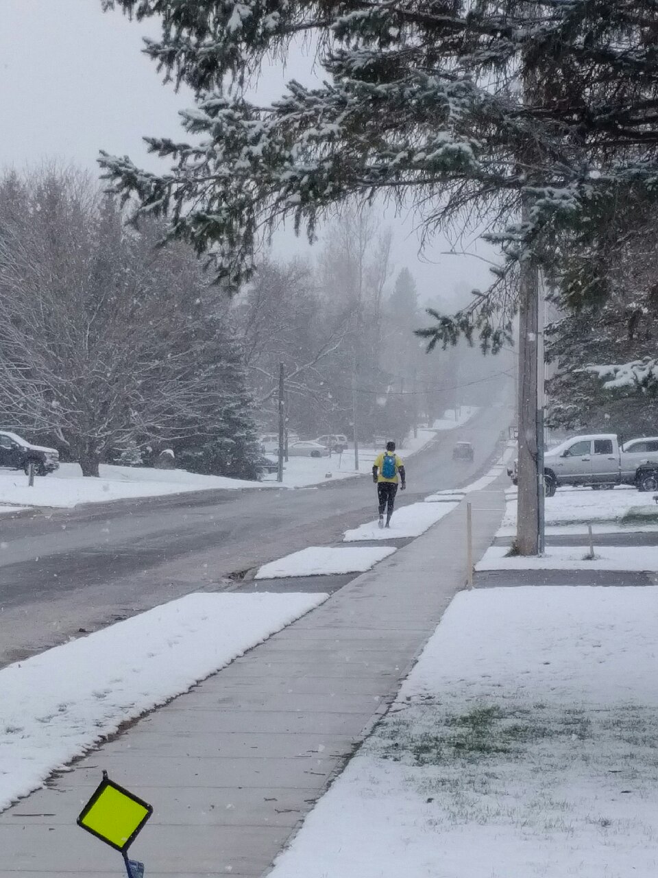 May 9th. A half marathon distance on day of one of my Smiles for Amanda Virtual. Such a late spring snowfall. Photo taken by my wife off her phone. I also used this run for the half marathon distance in the East Coast/West Coast Challenge organized by Candice Burt of Destination Trail and Jason Green of Yeti Runners.