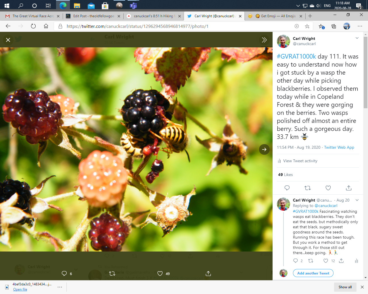 Carl! This is an amazing accomplishment! And that much forest bathing has to be good for the soul–insect bites be damned. Sending you a virtual high-five.