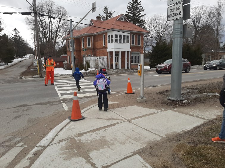 Love being the neighborhood crossing guard. Children know the whistle system exceptionally well and will not step onto the highway until they hear the second whistle. Picture taken pre-COVID early last March.