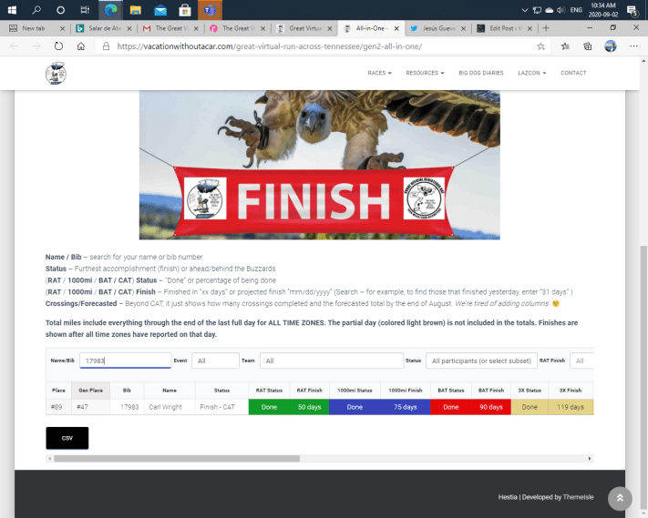 Final stats 89th place out of something like 19,620 runners. One thing I noticed that the triple crossing finishers did not stop once they hit 3x status. They kept going. What it meant if I were to retain my double digit position I would need to keep logging miles until the very end of the virtual on August 31st. Which I did, and ended up finishing with 3214.4 kilometers, or 3.15 crossings,