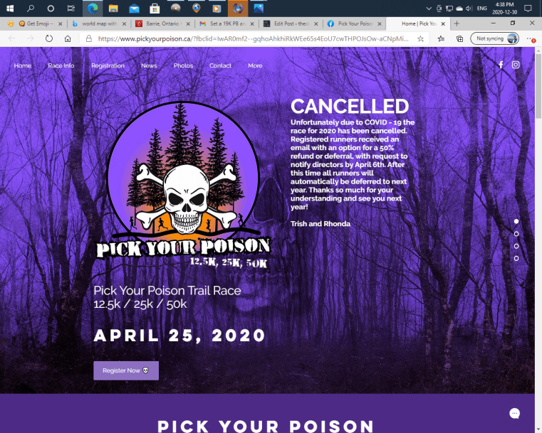 Screenshot Image Source: 2020 would have been my 5th year in a row running the 50k of Pick Your Poison. Held in Copeland Forest, it is my favorite race.  I deferred to 2021.