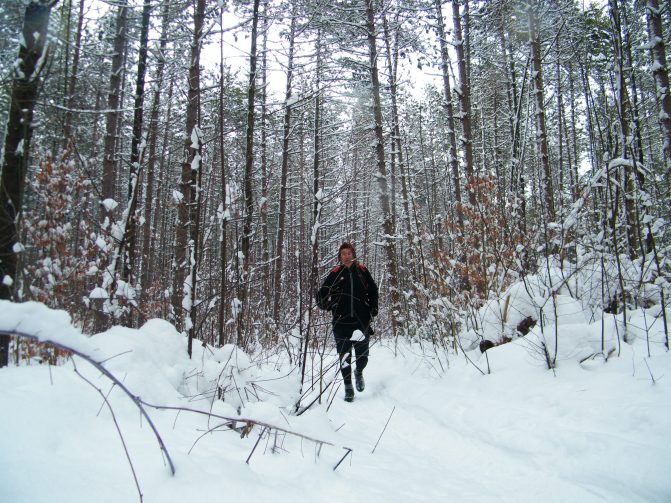 The date was December 29, 2020. We’ve had 70+ centimeters of beautiful, fresh snow, and I decided to go out into the nearby forest for some running “action shots” using the self timer on my camera. I just started doing these timer shots this year. And I felt that I was getting reasonably good at it. In two or three tries I would capture the photo I wanted. But for whatever reason, my timing was way off that day.