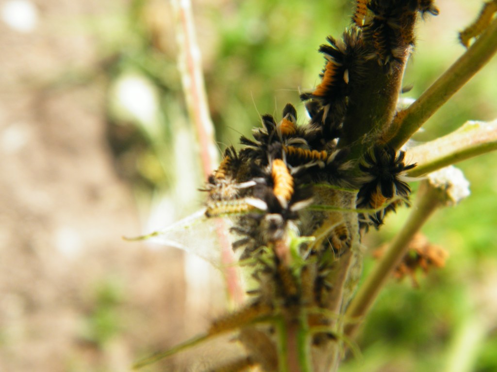 Another extremely fascinating creature that lays its eggs on the milkweed is the milkweed tussock moth. While carefully looking for monarch eggs and caterpillars in my pollinator garden I discovered one milkweed leaf with likely over a hundred little caterpillars. As the name implies, the milkweed is the host plant. Like the monarch butterfly, they require the milkweed plant for survival. The moth will lay eggs in clusters. When they hatch, the caterpillars feed together on the same milkweed plant in groups or “colonies.” They were so fascinating to watch. They will keep feeding until they skeletonize entire milkweed leaves, feeding only on the tissues between the veins, thereby avoiding the copious latex sap found in the veins. Once stripped clean, together they would march like an army on to another leaf. Fortunately, I have a lot of milkweed. More than enough for all the visitors who might happen to come to my garden.